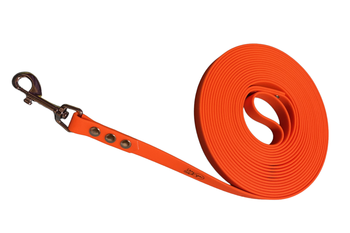A Dog and You hosszú póráz Biothane® anyaga vízlepergető, így strandolásra is tökéletes. Erős nikkel karabinerrel és szegecsekkel van ellátva, így nagyon stabil védelmet nyújt, biztosan nem szakad el séta közben (húzós kutyánál sem). A Biothane pórázaink, laposak és puhák. Kényelmesek, a fogójukon minden esetben karikát is kapnak, hogy ne csak biztonságosak és stílusosak legyenek, hanem praktikusak is.