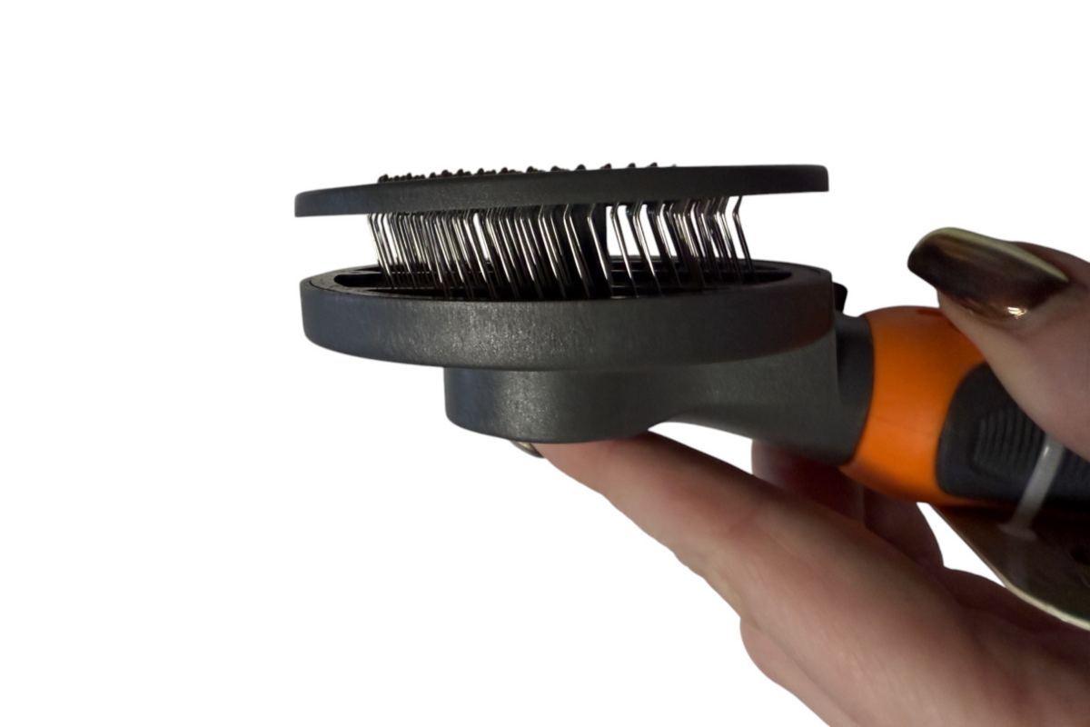 A kefe hátulján található egy gomb, amely a tisztításban nyújt nagy segítséget. Ezt megnyomva a kefe “letolja” magáról az összegyűjtött szőrt.