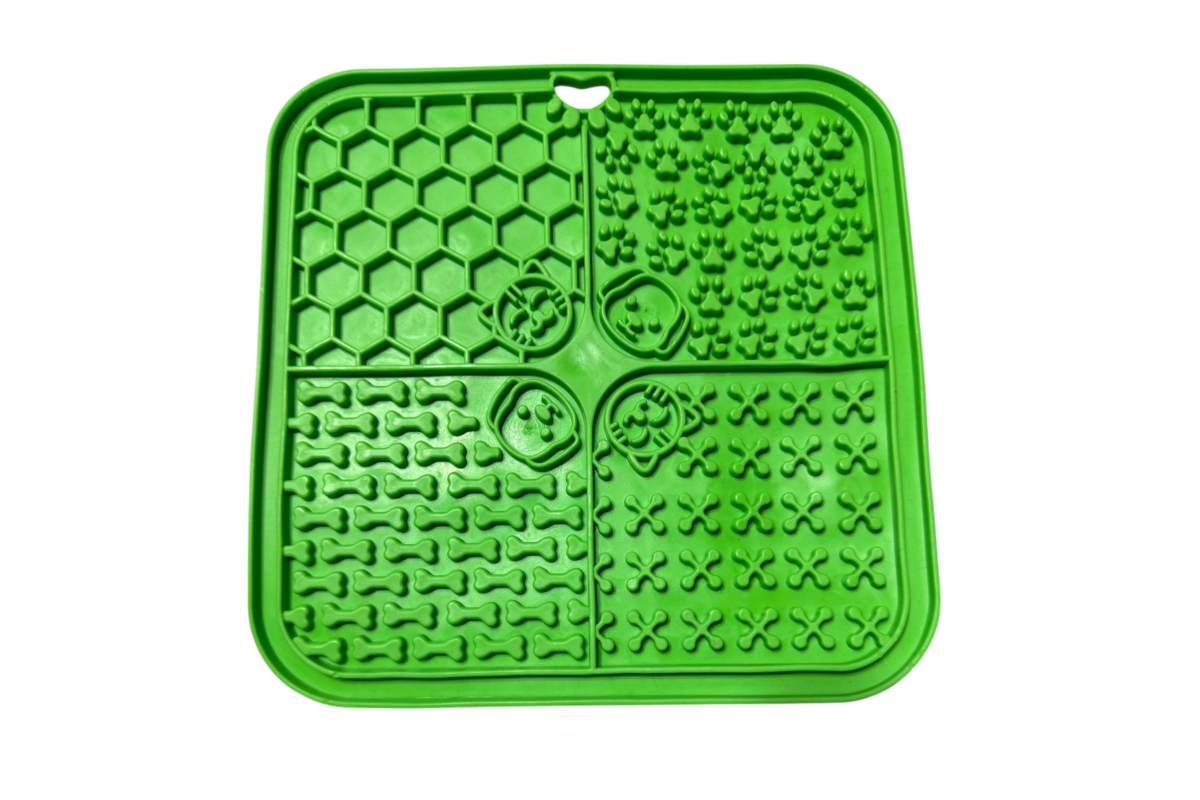 A Négyzet alakú lassú etető puha és rugalmas, élelmiszer-minőségű, BPA-mentes anyagokból készült. A talpán teljes terjedelmében tapadókorongok találhatóak, amely lehetővé teszi a tálca rögzítését a földön vagy akár a falon is. Lehetővé teszi a lassú etetést, elősegíti az egészséges táplálkozási szokásokat a kistestű kutyák számára, megakadályozza a fulladást és csökkenti a szorongást. Emellett javítja az emésztést és a fogak egészségét is. Szórakoztató és interaktív módja annak, hogy a kutyák élvezhessék az ételeiket, miközben javítják az emésztést.