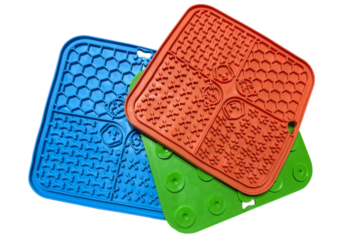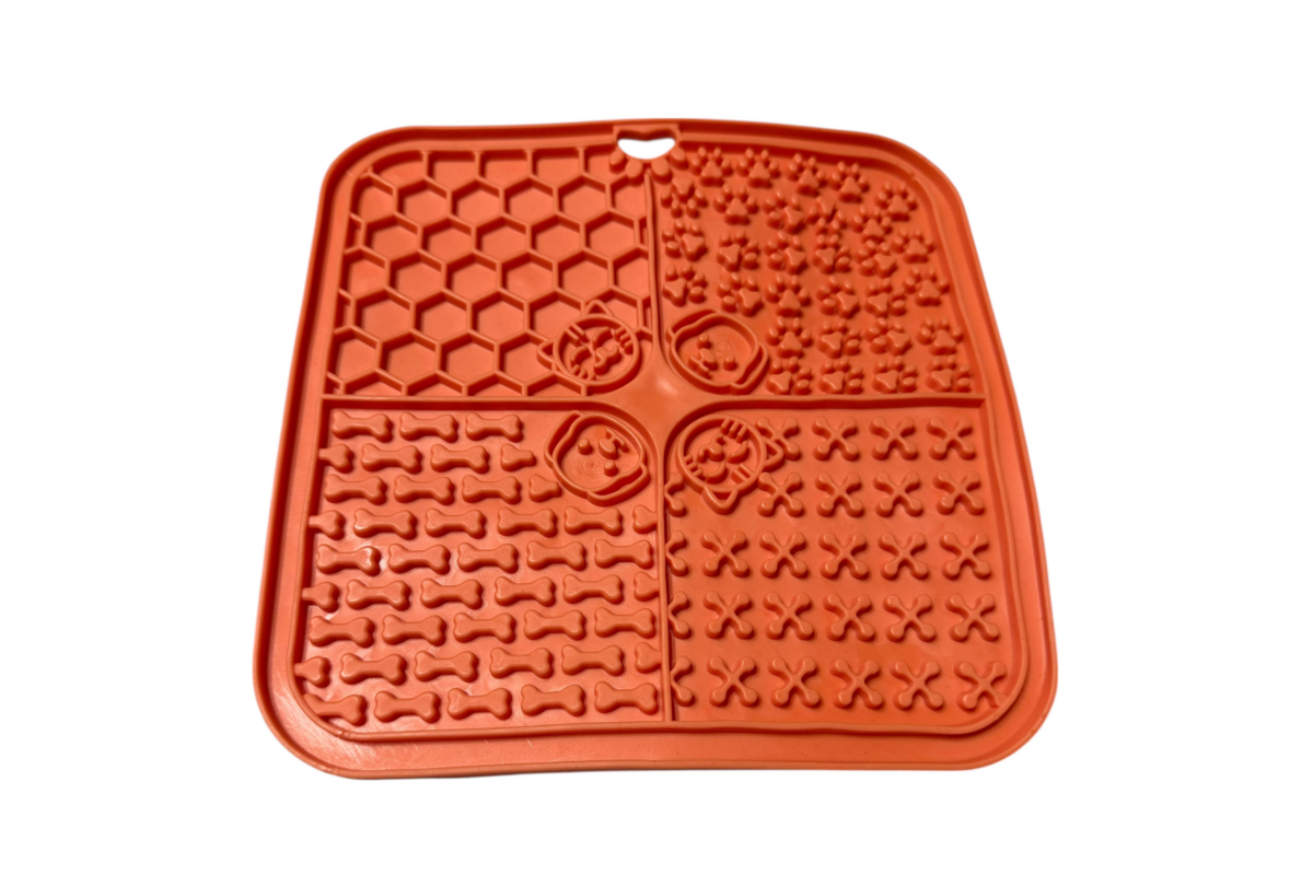 A tányérra helyezhető szilárd darabos étel vagy akár folyékony állagú étel is. Ajánljuk mogyoróvajhoz, nedves táphoz, sütőtökpüréhez is. A tálca előkészítve, étellel megkenve fagyasztható is így nagy melegben hűsítő finomságokat kínálhatunk vele kedvencünknek. A tálca négy részre van bontva, mindenhol kicsit más mintával, így másképp rejti el a finom falatokat, megnehezítve ezzel a behabzsolást.