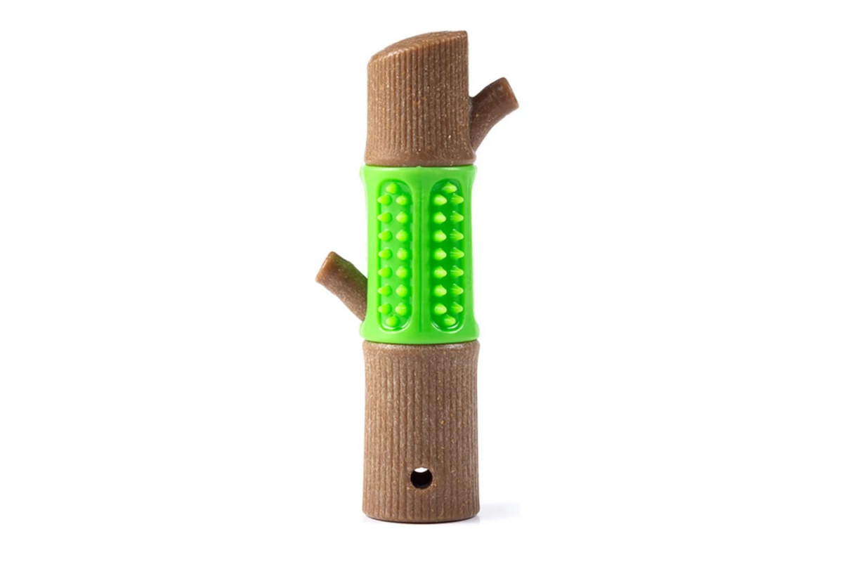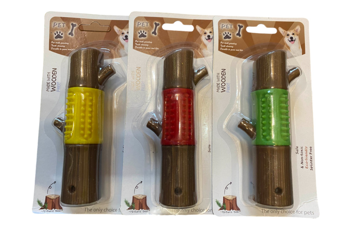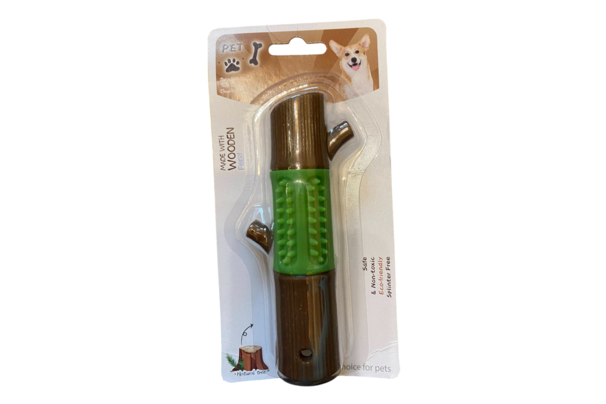 A rágóbot egy fából készült, természetességet sugárzó rágóka, ami játékosan ápolja a fogínyt és a fogakat. A tömörített faforgács hozzáadásával készült bot környezetbarát és igen tartós, a kutyád hosszútávú barátja lehet. A vastagabb faágat megjeleníteni kívánó játék egy részén TPR anyagból készült cső öleli körül, ami a rajta található apró részletekkel kíméletesen masszírozza a kutya fogínyét.