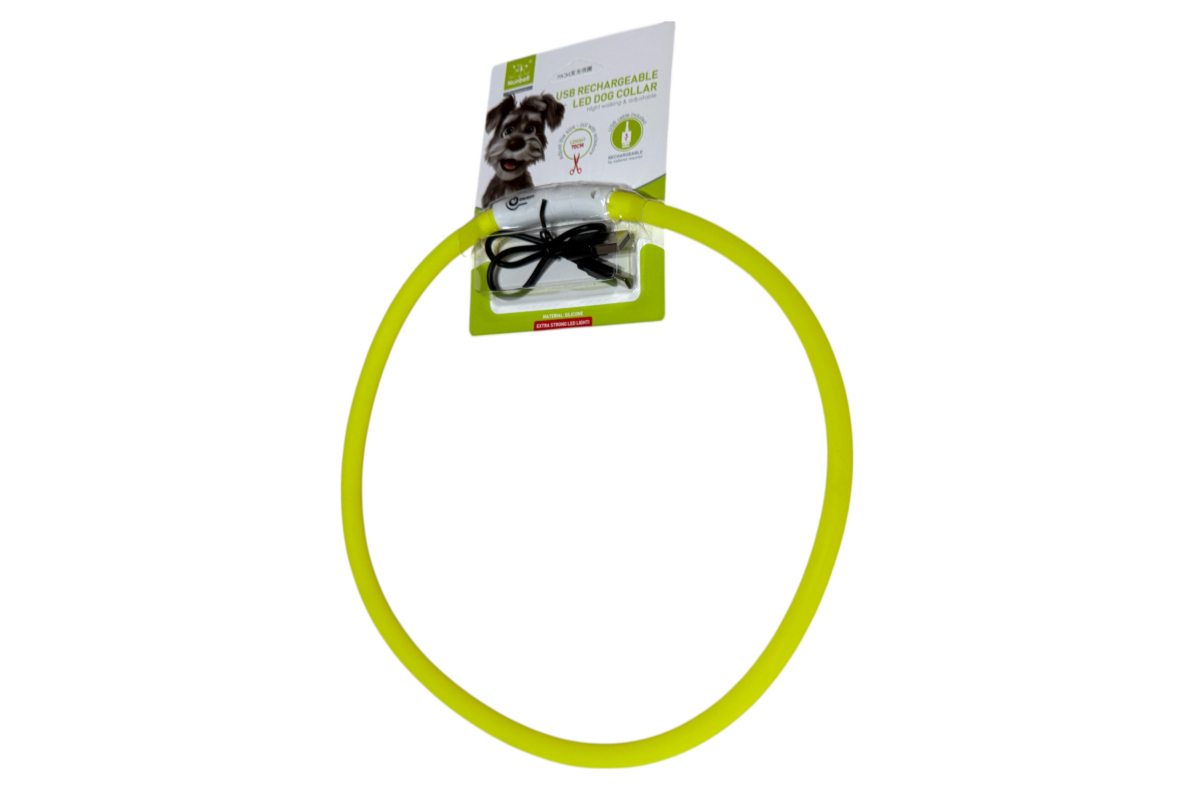 A Világító nyakkarika elengedhetetlen kelléke a biztonságos esti sétáknak. A fényvisszaverős társaival és nyakörvekkel szemben ez a nyakkarika USB adatkábellel tölthető, és LED fénnyel világít, így önálló fényforrásként hívja fel a figyelmet a kedvencedre szürkületben, vagy éjszakai órákban. Segít neked szemmel tartani a kutyust, ha épp póráz nélkül élvezi a szabad sétát, és mások figyelmét is felhívja rá, időben látni fogják az autóval, kerékpárral közlekedők is.